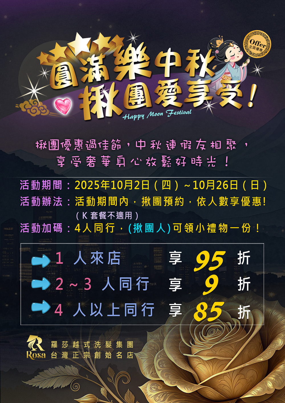 來 ROSA 越式洗髮,享受越南傳統放鬆療程,讓身心在秋夜裡輕盈如月。
